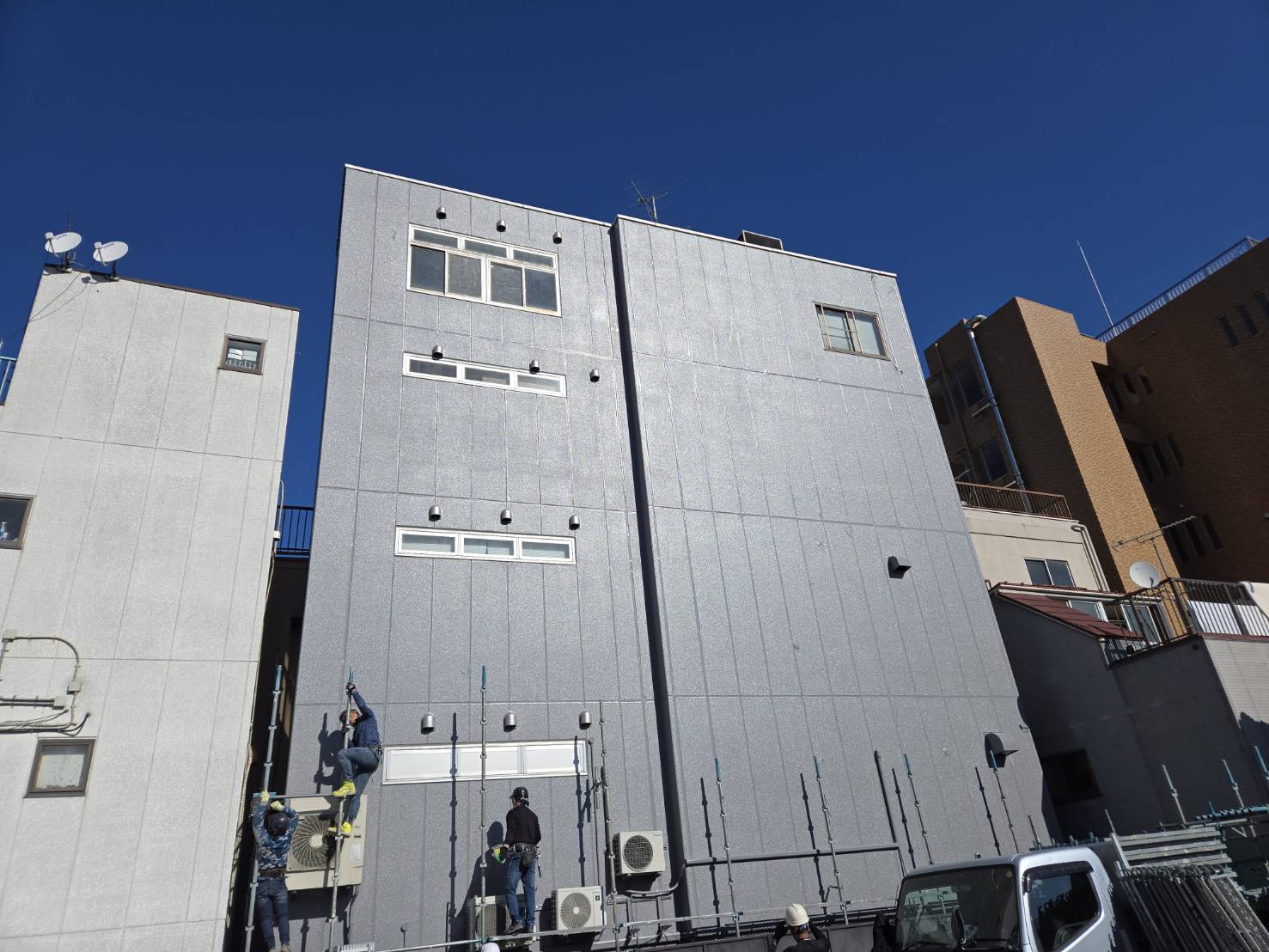 今回の工事では、外壁塗装に加えて、建物の寿命を左右する「鉄骨補修工事」「防水工事」「コーキング工事」を一気に行いました。